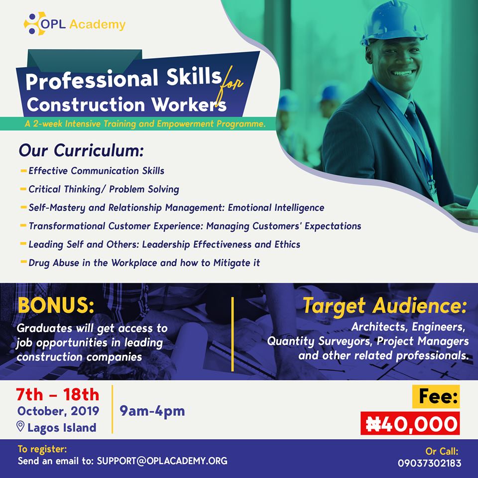 Professional Skills for Construction workers by OPL Academy. (For Professionals)