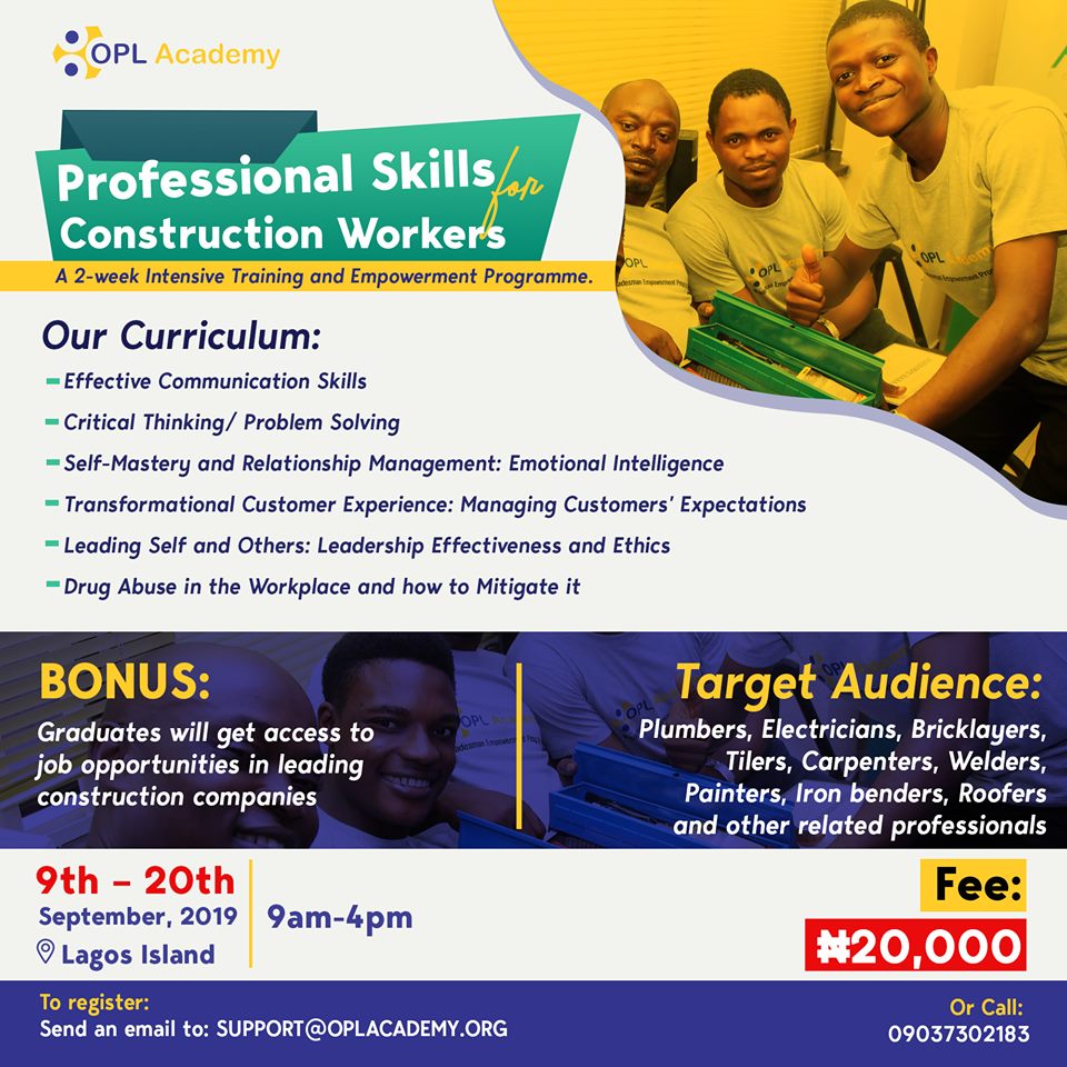 Professional Skills for Construction workers by OPL Academy. (For Tradesmen)
